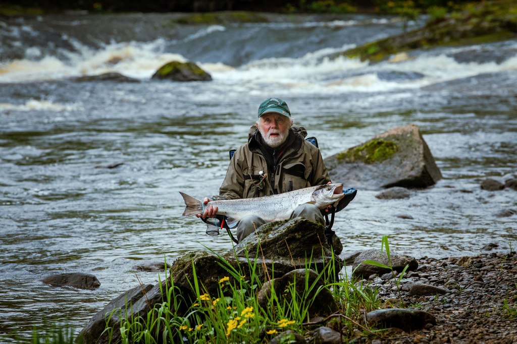 Han fikk laks på 7 kg to ganger i håven før fisken gav opp.