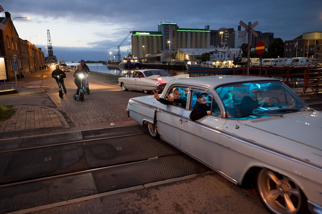 Tjue mil hjemmefra møter jeg venner fra Halden, i sine amerikanske biler – uten tak, cruise opp langs Vänern inn til Lidköping sentrum en sen julikveld.